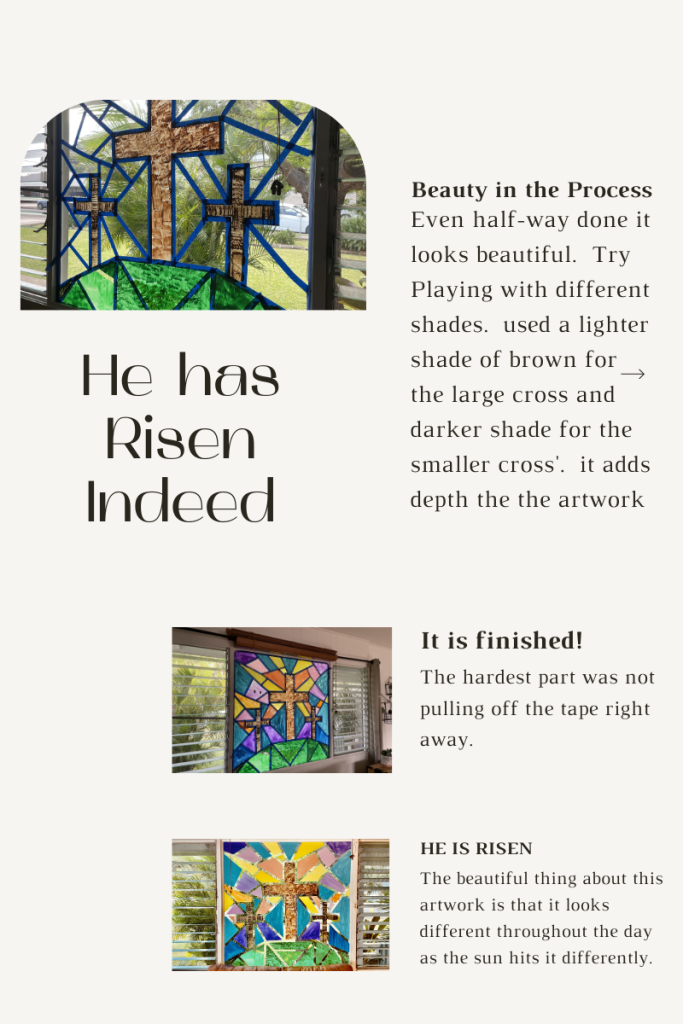 My beautiful friend Raemarie posted this amazing painted stain glass window that she did with her girls on Facebook.  She graciously gave me all the tips and tricks for this DIY Easter Project!  THANKS, GIRL FOR THIS AMAZING EASTER INSPO!