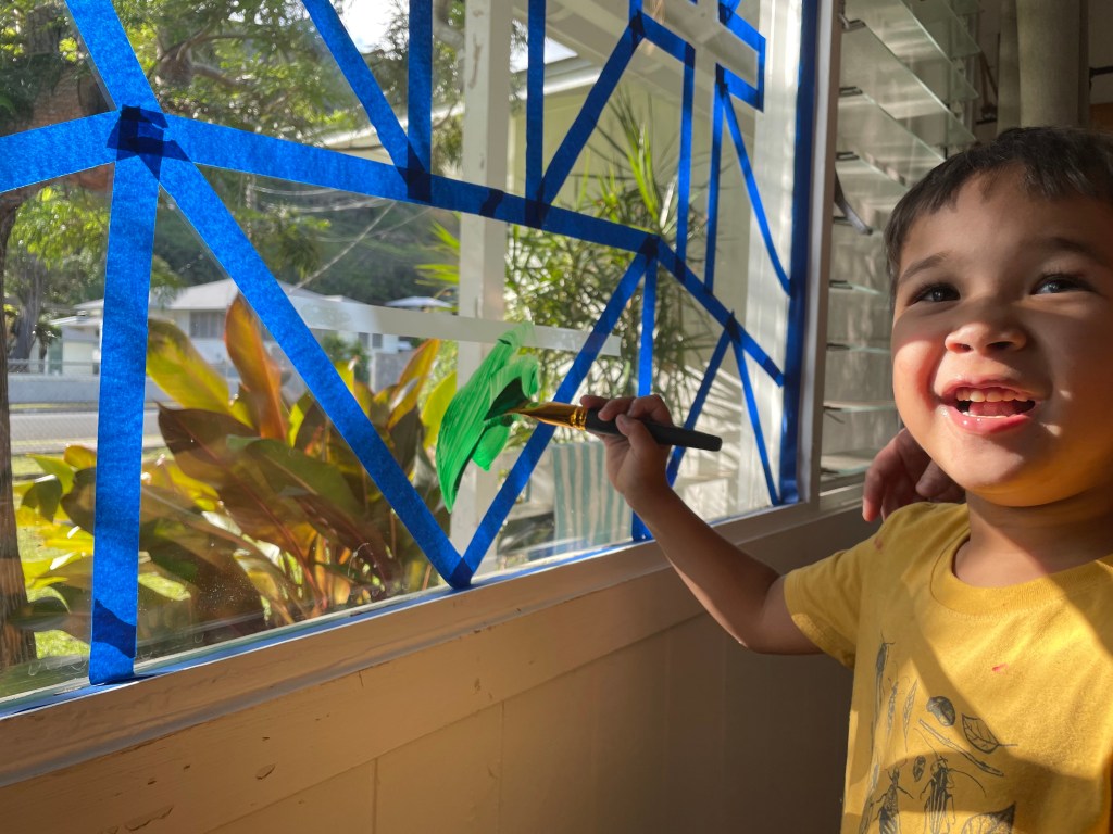 • Keep an eye on those toddlers – mine started running through the house painting random walls!