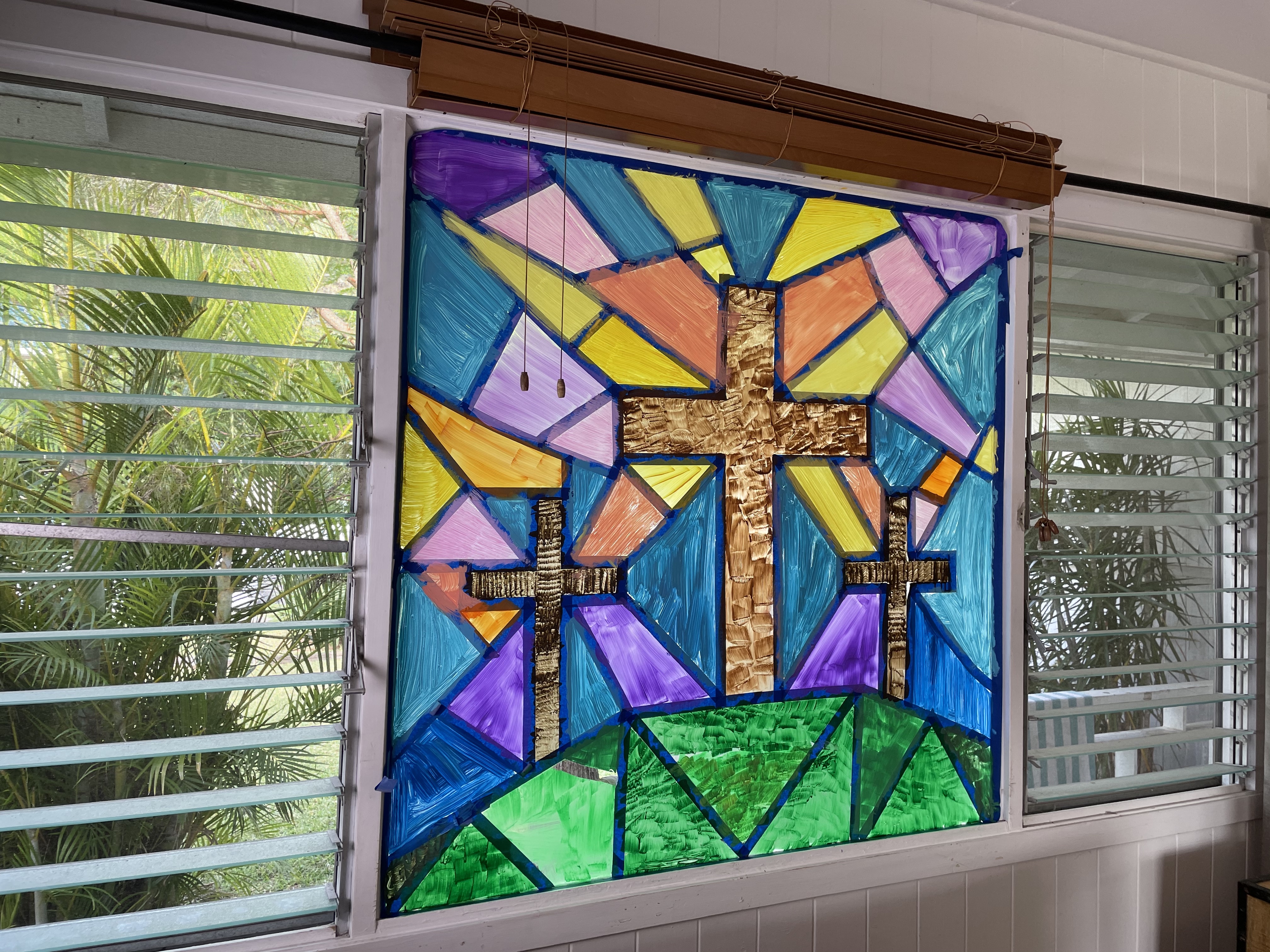 This year I decided that I had to try! This Painted Stain Glass Window is a very simple, fun and easy project the whole family enjoyed.  And we will be enjoying it during the Lent and Easter season.
